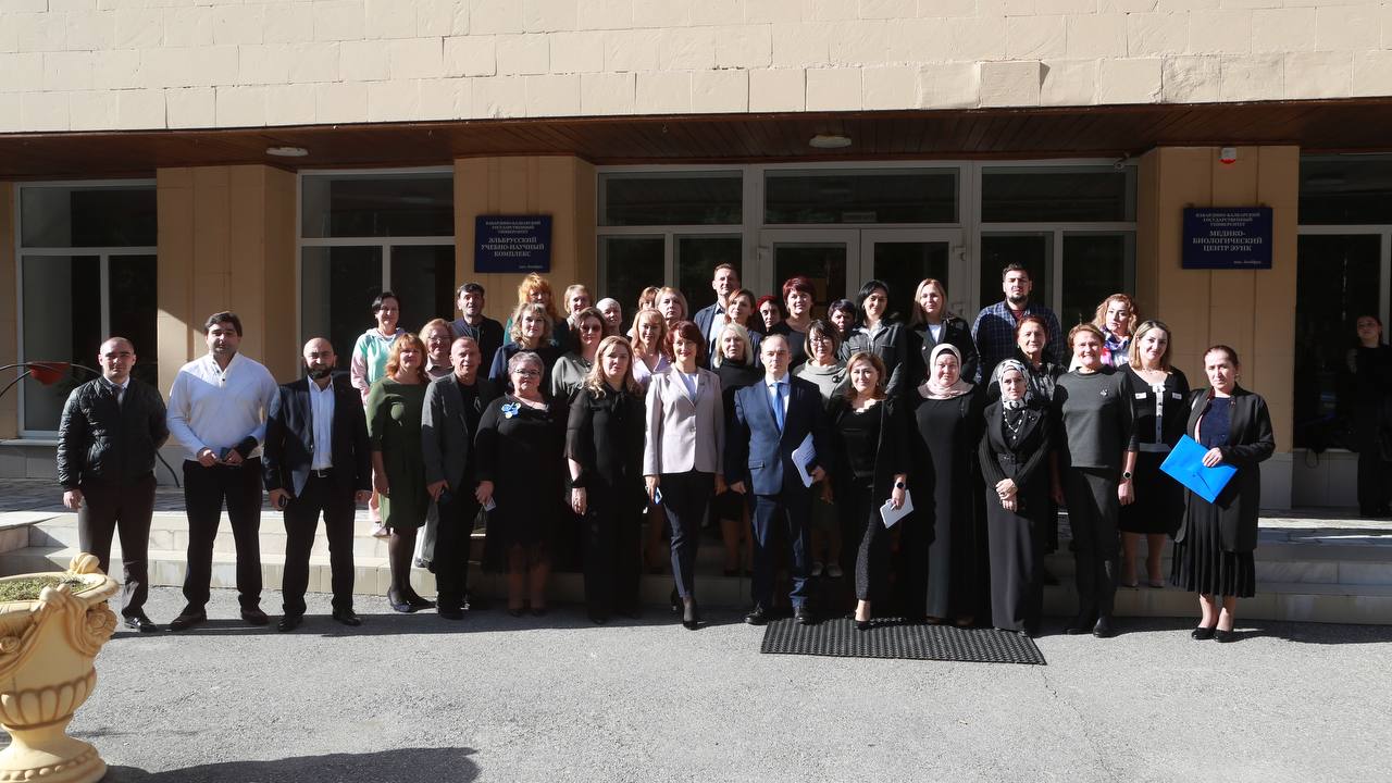 30.10.2022Ассаламу 1алайкум, дорогие друзья! 26 октября 2022 года на базе Эльбрусского учебно-научного центра Кабардино-Балкарского государственного университета им. Х.М. Бербекова состоялось выездное заседание ФУМО СПО по УГПС 44.00.00 Образование и педагогические науки, в котором приняли участие директор Грозненского педагогического колледжа Халадов Муслим Магомедович и заместитель директора по УР Шовхалова Людмила Дмитриевна. На заседании ФУМО обсуждались ключевые направления государственной политики и основные векторы развития среднего профессионального педагогического образования на современном этапе, проблемы внедрения единых подходов к подготовке педагогических кадров в работу образовательных организаций в текущем учебном году, основные вопросы проектирования образовательного процесса с учетом примерных образовательных программ по специальностям 44.02.01 Дошкольное образование и 44.02.02 Преподавание в начальных классах, а также перспективы актуализации ФГОС СПО и разработки примерных образовательных программ по специальностям УГПС 44.00.00 Образование и педагогические науки. Дала т1аьхье беркате йойла!