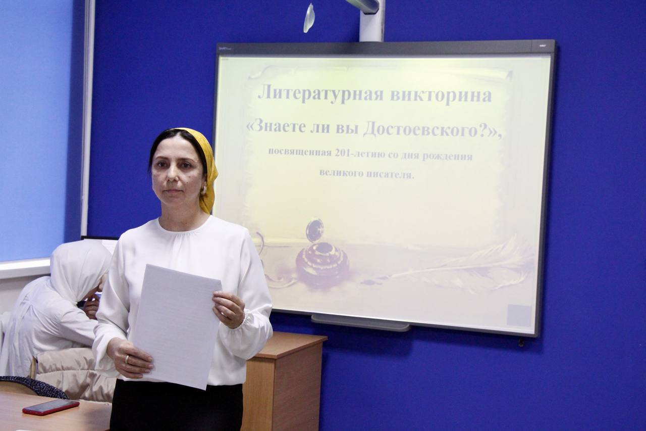 11.11.2022Ассаламу 1алайкум, дорогие друзья! В Грозненском педагогическом колледже прошла литературная викторина «Знаете ли вы Достоевского?» в рамках предметной недели по русскому языку и литературе. Предметная неделя является одной из форм учебной деятельности, которая может повлиять на развитие личностных особенностей обучающихся. В ходе викторины участникам задавались вопросы о жизни и творчестве Ф.М. Достоевского. По итогам викторины призовые места разделились следующим образом: I место – команда «Черные лебеди»; II место – команда «Фортуна». Целью мероприятия являлось популяризация творческого наследия Ф.М. Достоевского среди обучающихся. Дала т1аьхье беркате йойла!33340019:39..35 Comments