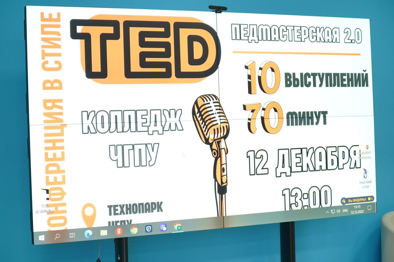 13.12.2022В ЧГПУ завершилась конференция в стиле ТЕД, которую организовала Педмастерская Алихана Динаева в рамках проекта «Педмастерская 2.0». Мероприятие объединило студентов, преподавателей и учителей из ЧГПУ, ЧГУ, Гуманитарно-педагогического колледжа ЧГПУ, Грозненского педагогического колледжа и школ Чеченской Республики. Состоялось 10 ярких выступлений. Постоянный интерактив с аудиторией, современные презентации, необычные примеры, юмор и удивительные истории – всё это сделало конференцию особенным и запоминающимся событием в жизни Педуниверситета. Завершить этот год Педагогическая мастерская Алихана Динаева собирается еще одной большой конференцией – «Easy Science», на которой студенты представят стендап на научные темы.