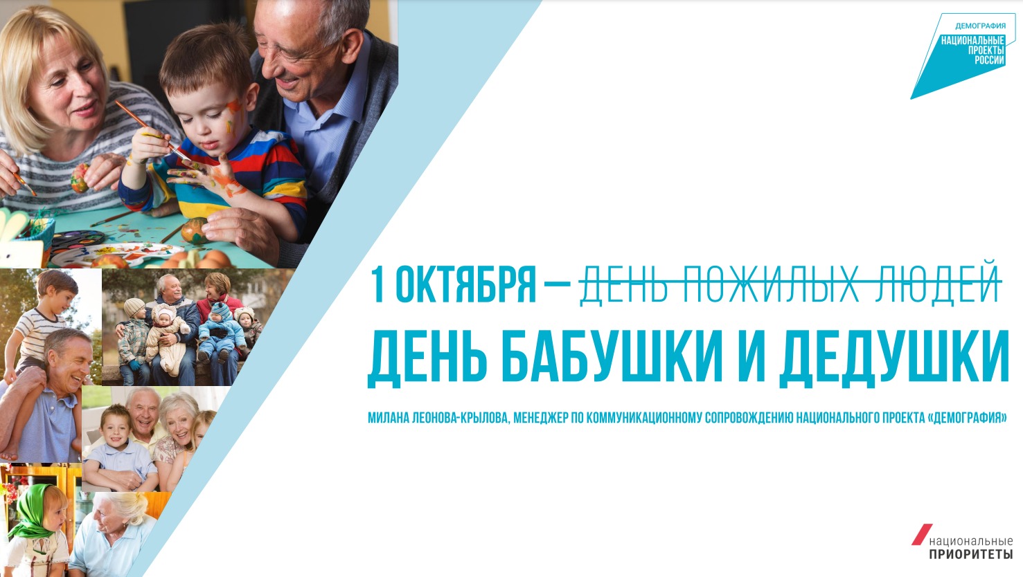 29.09.20231 октября в Международный день пожилого человека в России впервые проведут акцию «День бабушки и дедушки», при поддержке национального проекта «Демография».